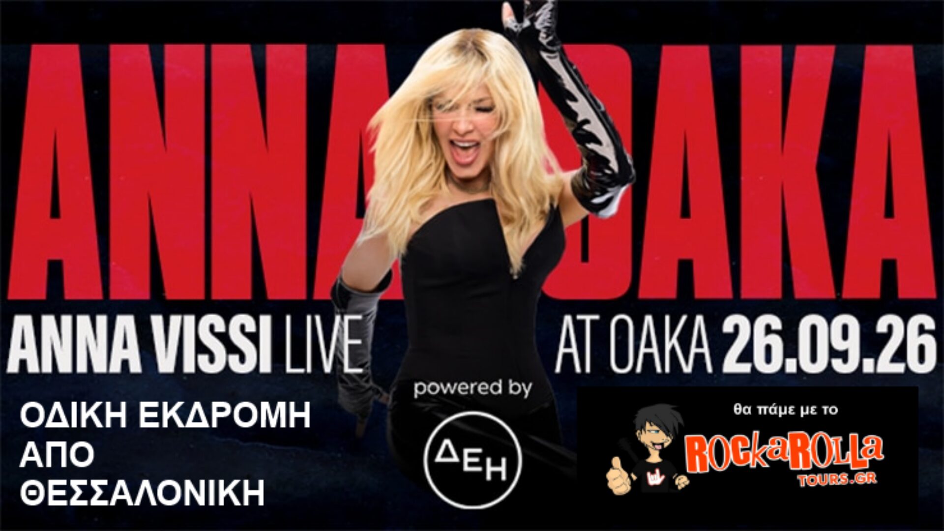 Η παρέα του Rockarolla Tours διοργανώνει οδική αυθημερόν εκδρομή / μεταφορά από Βόρειο Ελλάδα με αφετηρία την Θεσσαλονίκη για την συναυλία της Αννα Βίση στην Αθήνα