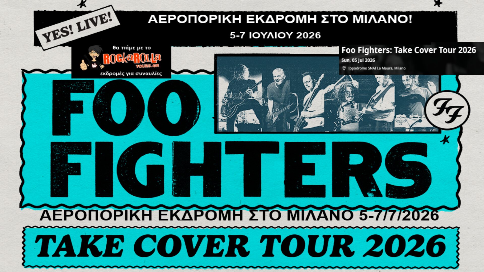 Τριήμερη αεροπορική εκδρομή από Θεσσαλονίκη και Αθήνα για την συναυλία των Foo Fighters στο Μιλάνο στις 5 με 7 Ιουλίου του 2026