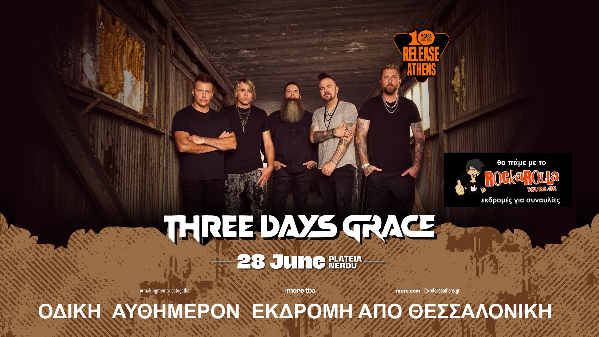 Οδική αυθημερόν εκδρομή από Θεσσαλονίκη για την συναυλία των Three Days Grace στην Αθήνα την Κυριακή 28 Ιουνίου 2026, στην Πλατεία Νερού